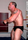Justin's never looked more stunning or focused, shadowboxing as his robe slips open sexily, doing crunches with his ample package filling the frame, flashing that transfixing, white-toothed smile at his fans thru the camera while he stretches. Muscle monster Mazetti's never looked more intimidating, clad in black boots and leather, indulgently flaunting and flexing his r…See the action now!