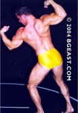 Tattooed Dave is a big super hunky, nipple-pierced, tough-looking stud man. Fan favorite Mike poses in a yellow speedo while goateed, nipple-pierced superhunk Dave cockily looks on -- and the ensuing posedown will leave you gasping. Both hunks struggle for dominance. A tight headscissors turns into an astounding spladle, with Mike's ankles crossed over Dave's vulnerable…See the action now!