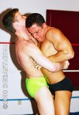 Here are 2 of our most popular stars. And why not? They have it all: great looks, beautiful bodies and wrestling skill. Tommy is our classic babyface who always gives as good as he gets.Watching him crawl and grovel on the mat in his perfectly fitting lime green trunks is an award-winning show unto itself. Mike has developed a decidedly aggressive tilt in the recent past…See the action now!