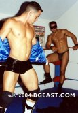 Throbbing music pounds. A man in a black--mask, hat and cape--sways in the ring. A flourish, he reveals a torso sheathed in a sweat-soaked T-shirt clinging to the ridges of his rippling ABS. Rrrrrrrip--the shirt shreds like tissue. A sly smile, he steals a caress of bulging pec, teasing his nipple. Tear-away pants, a see-thru parody of a squarecut--even that falls to the…See the action now!