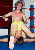 Flyboy and Bryan are back & looking hot. Bryan's in a 'bad' mood; he takes it out on Flyboy's gut with punches, stomps & claws! Flyboy's body & head scissors have Bryan bridging in his tight trunks. Bearhugs in the turnbuckle, elbow drop to the crotch, intense submissions have both muscleboys hard, then stripped for Bryan's nude backbreaker finale! Superb pro squash on t…See the action now!