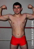 Newcomer Nick is a natural: a handsome young stud with pierced nipples, stars tattooed on his upper pecs, trunks that hug his butt like a second skin. When Rudy appears, he barely masks his contempt, laughingly calling him 'little boy'. Rudy may be smaller, but he's hardly a pushover. Also making his debut, his trunks reveal a humpy muscled bod. When the match starts, it…See the action now!