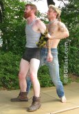 Hairy-chested outdoorsman Rocky Sparks is spreading wrestling mats on a clear, sunny day. Nearby, Forrest Taylor is about to saw down a tree. It happens to be a tree Rocky visits a lot. He protests. Forrest says that he is just doing his job. Then he gets pushy: "I'm cutting down the tree whether you like it or not." The tree-hugger shoves the lumberjack's chest. Flannel…See the action now!