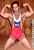After another post-match reflection...one more match! Rookie and former Playgirl model Shaun Hilton has a perfect-for-wrestling physique. With warm-up neck bridges and one-arm pushups, it's obvious he's experienced. Clad in a near-see through white singlet so brief it doesn't quite cover the straps of his jock, Aryx unwisely attempts to outwrestle the grappler and loses…See the action now!