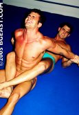 West is a cop who brings a leatherpunk to the arena for a "lesson". Forced to strip into the hot bikini trunks Blake brought, the exhibitionist punk shows off his ripped bod & big butt as the cop strips to sexy trunks. The cop's initial attack unleashes Mikey's streetfighting frenzy. A low blow and Mikey poses before exacting some justice of his own with chokes and cl…See the action now!