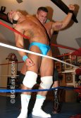 Perhaps Brad Barnes's time has come. Brad did a spectacular bad-ass turn on cutie-pie Kip Sorell earlier this year, and in the opening shot of Hunkbash 23, the camera worships his perfect torso. In ultra-baby-blue trunks and matching wristbands, he combines classical heroism with all-American boy-next-door looks. "Don't let me interrupt your posing," Braden Charron urges…See the action now!