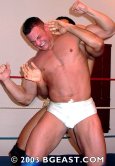 Blaze scouts the competition in the weight room. "Show me what you got," he orders the massively muscled Brock. Blaze is unfazed, until he sits down for his workout and discovers Brock was doing reps with the ENTIRE stack of weights. That's just the sort of challenge Blaze likes: "The Kid'll never know what hit him," he mutters. But when Blaze tries to overpower Brock t…See the action now!