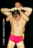 As musclestud phenom Casey flexes, Doug pounds his pecs and slowly feels his massive muscles. Hot double-posedown! Butts perfectly cupped by squarecut trunks as they wrestle: headscissors, hammerlock, and a long nelson/fig 4 bodyscissors submission. Tit-twisting, butt slapping, pec-pounding and Casey's numerous assets distract the vet. Doug gets caught in painful crotchs…See the action now!